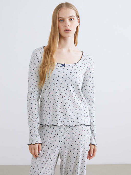 U Yaka ?i?ekli Kad?n Pijama Tak?m