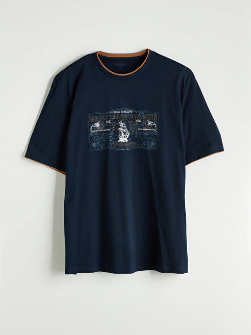 Bisiklet Yaka Bask?l? Penye Erkek Ti??rt