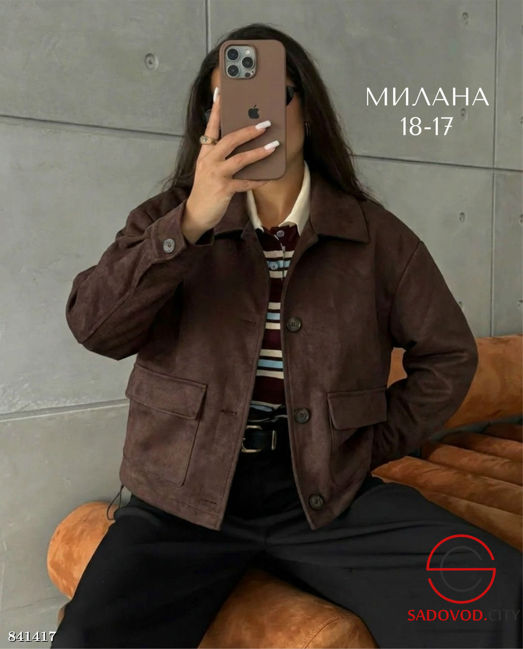 женском бомбере из благородной замши.