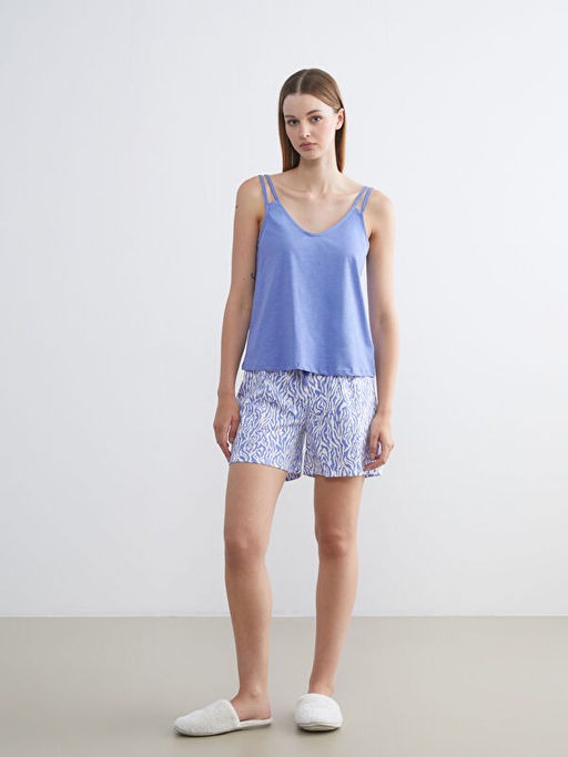 V Yaka Desenli Ask?l? Kad?n ?ortlu Pijama Tak?m?