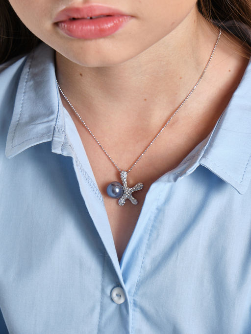 • Подвеска Морская звезда с жемчугом PU0156 серый/серебро