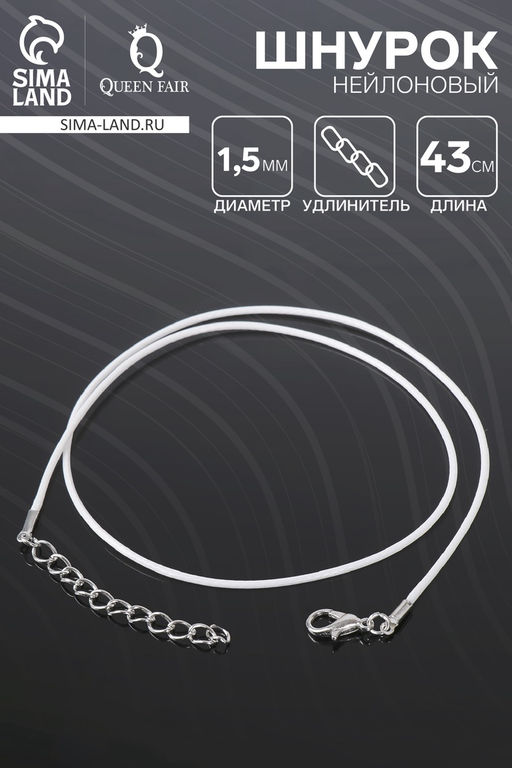 • Цена за 10 шт. Шнурок нейлоновый d=1.5 мм, 43 см + удлинитель, белый