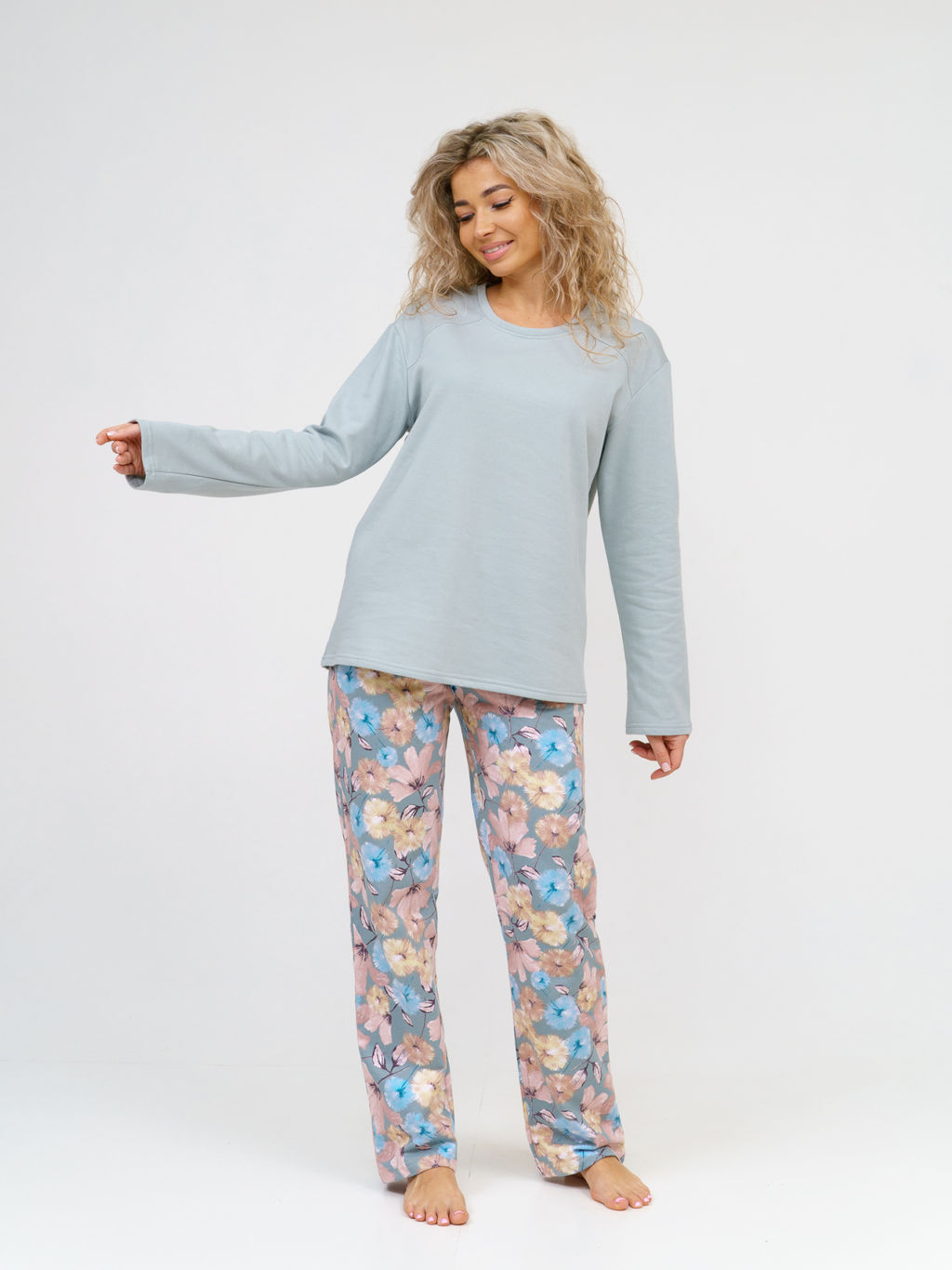 Мягкая женская пижама из футера с начесом идеальный комплект для комфортного отдыха и сна! Настоящей леди важно оставаться красивой даже дома, и эта пижама создана специально для тех, кто ценит уют и стиль. Комплект состоит из кофты с элегантной кокеткой и округлым вырезом горловины, оформленным аккуратной планкой, а длинные рукава дарят дополнительное тепло. Штаны с удобной резинкой на поясе и практичными карманами в боковых швах обеспечивают полную свободу движений. Мягкий футер с начесом приятен к телу, сохраняет комфортную температуру тела в любое время года и не теряет форму даже после множества стирок. Наш костюм идеально подходит не только для сна, но и для отдыха дома, романтических вечеров, пижамных вечеринок с друзьями и даже летних прогулок. Этот костюм не просто домашняя одежда, а воплощение заботы о себе, ведь каждая женщина заслуживает чувствовать себя комфортно и выглядеть прекрасно в любых ситуациях. Широкий размерный ряд позволяет подобрать идеальную посадку, а стойкость цвета гарантирует, что пижама будет радовать вас долгое время. Подарите себе или близким моменты нежности и уюта с этой стильной и практичной пижамой сочетание удобства и элегантности сделает ее любимой в вашем гардеробе!