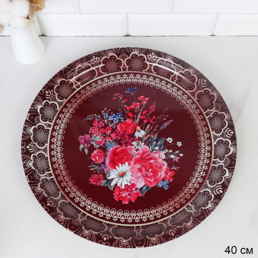 • Поднос круглый 40 см металл Эмаль Букет Бордо арт. M-101 (730881)