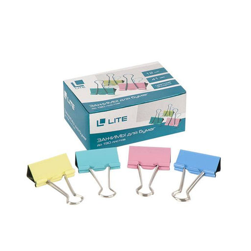 Цена за 10 шт. Зажим для бумаг LITE 41 мм ассорти, металл, 1 шт