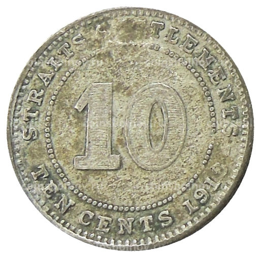 • Монета 10 центов 1918 года Стрейтс Сетлментс