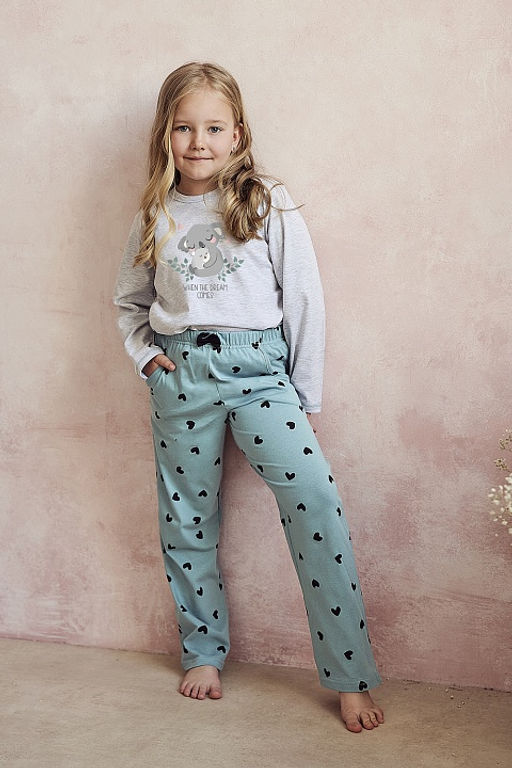Хлопковая пижама для девочек Nina. Пижама выполненная из качественного и мягкого хлопка, состоит из кофты и брюк. Кофта свободного кроя, с длинными рукавами и круглым вырезом горла, прямые брюки из 100% хлопка, с карманами по бокам. Спереди кофта украшена забавным принтом.­