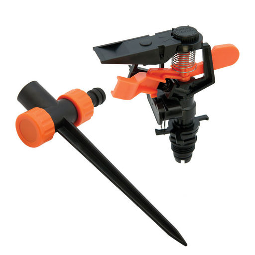 Надежный пластиковый фрегат-ороситель пульсирующий на ножке обеспечивает мощный полив пульсирующей струей. Простое регулирование сектора полива от 0 до 360. Функция блокировки выбранного сектора полива. Регулировка высоты и степени разбивки струи. Универсальная пластиковая ножка за счет заднего выхода с наружной резьбой 3/4" позволяет продолжать последовательное подключение дополнительных распылителей. Подключение к шлангу с помощью коннектора. Это действительно качественный оросительный аксессуар, который удобно фиксируется на любом грунте, благодаря специальному колышку.