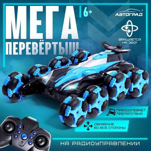 • Перевёртыш радиоуправляемый, работает от аккумулятора, свет, звук, дым, 8 режимов работы, цвет синий