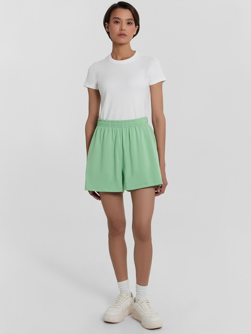 Свободные и стильные женские шорты ваш незаменимый спутник для жарких летних дней! Модель с высокой посадкой идеально подчеркивает линию талии, а эластичный пояс обеспечивает удобную и комфортную посадку. Практичные боковые карманы и накладной карман сзади добавляют функциональности, позволяя хранить мелочи всегда под рукой. Шорты выполнены из натуральной хлопковой кулирки, что делает их мягкими, легкими и приятными к телу, обеспечивая комфорт даже в самую жаркую погоду. Нижние срезы аккуратно обработаны швом вподгибку, что придает изделию завершенный вид. Этот стильный и практичный элемент гардероба подойдет для прогулок, отдыха или встреч с друзьями свобода и комфорт в каждом шаге!­