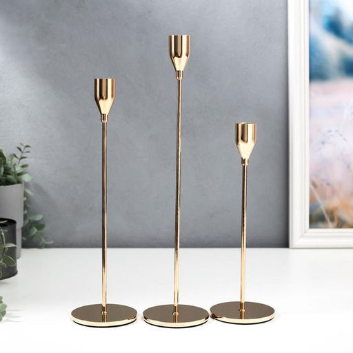 • Набор подсвечников на 1 свечу «Классика», 3 шт., под золото, 24.5×7.7×7.7 см, 29.5×7.7×7.7 см, 34.5×7.7×7.7 см