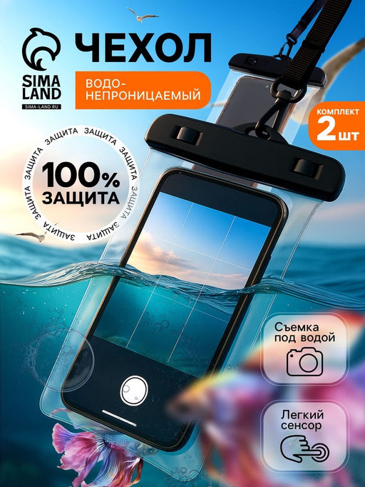 • Набор водонепроницаемых чехлов для телефона, 2 штуки, размер 20×11 см, чёрные