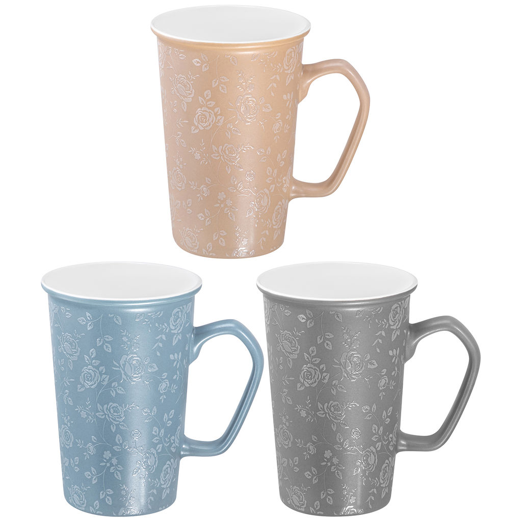 • Набор кружек 3 пр. 420 мл 12,5*9*13 см "Чайные розы", разноцветные, фарфор