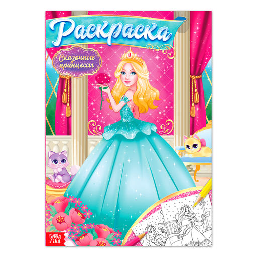 Раскраска Сказочная принцесса книга с контурными картинками волшебного королевства, царевны в прекрасных нарядах, замка. Малышка сможет их раскрасить карандашами, красками или фломастерами. Страницы и обложка выполнены из бумаги.