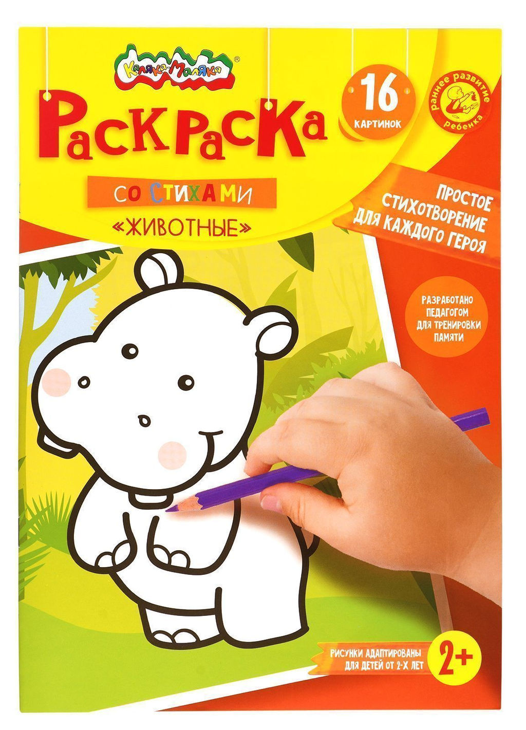 Цена за 2 шт. Раскраска детская Каляка-Маляка ЖИВОТНЫЕ со стихами А4 205х290 мм скрепка 8 листов от 2 ле...