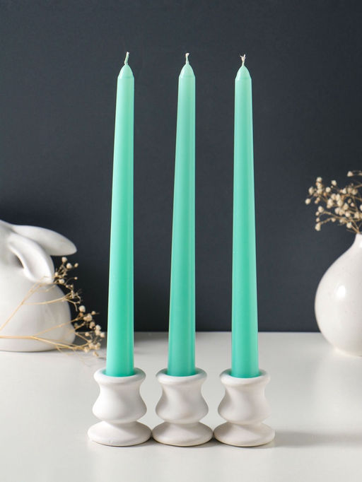 • Свеча античная 25 см (набор 3 шт) 58 гр, 7 ч, цв. мятный