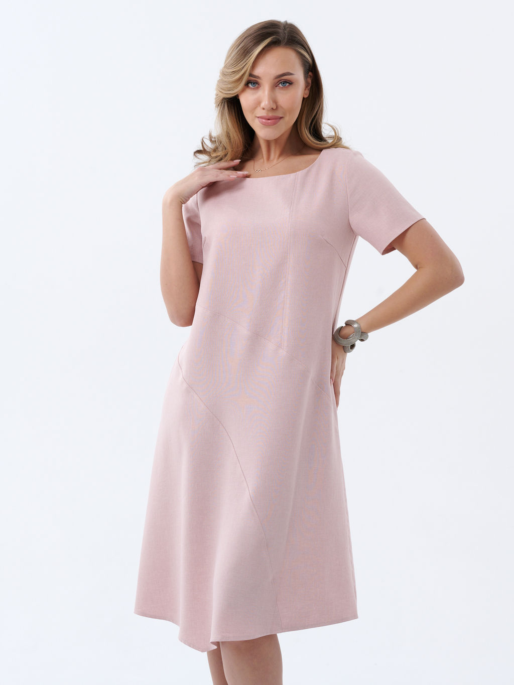 Платье А-силуэта с ассиметричной линией низа, фигурными подрезами по полочке и спинке. Выточки из боковых швов дают идеальную посадку.­