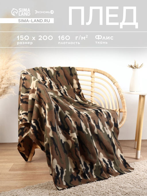 • Плед флисовый Экономь и Я. Камуфляж, 150?200 см, плотность 160 г/м?