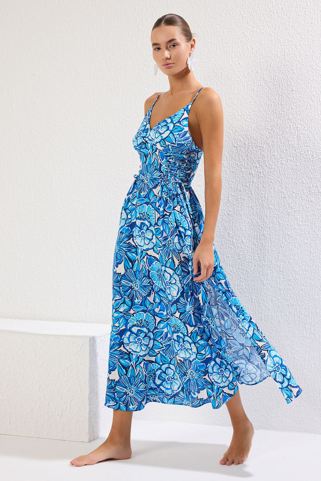 Cicek Desenli Dokuma Baglama Detayl? Maxi Plaj Elbise TBESS24EL00098