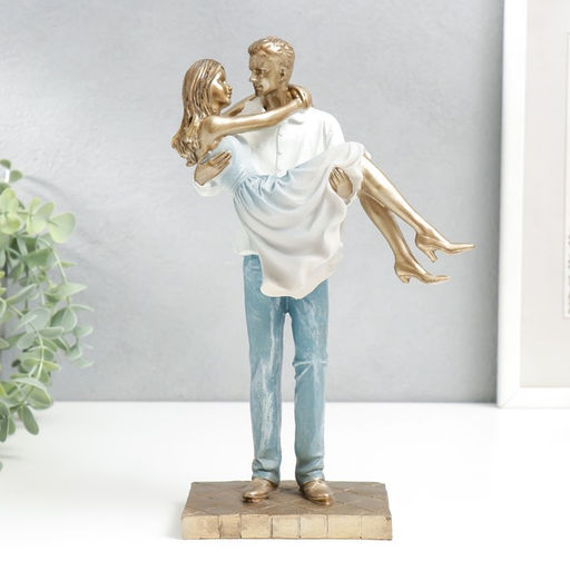 • Фигура полистоун Влюблённые. Буду носить тебя на руках, бело-голубой под бронзу, 26?9?16 см