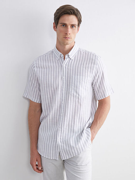 Regular Fit K?sa Kollu ?izgili Erkek G?mlek
