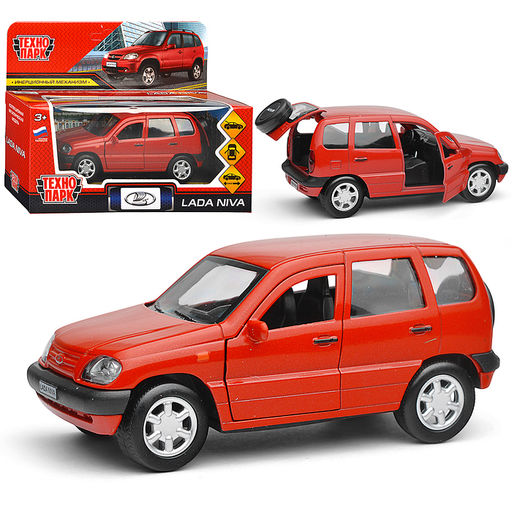 • Машина металл LADA NIVA 12 см, (двери, багаж, красный)инерц., в коробке