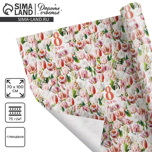 • Цена за 10 шт. Бумага упаковочная глянцевая 8 марта, 70?100 см