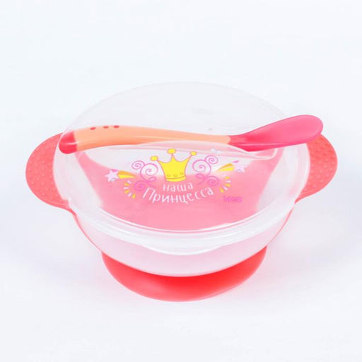 Тарелка M&B «Наша принцесса» 350 мл, на присоске, в наборе крышка, ложка, розовая