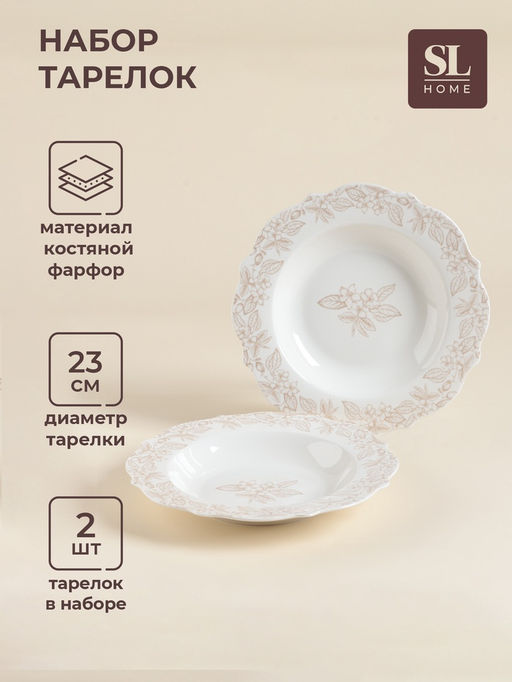 • Тарелки глубокие SL Home «Аманде», d=23 см, 300 мл, набор 2 шт., фарфор, белые