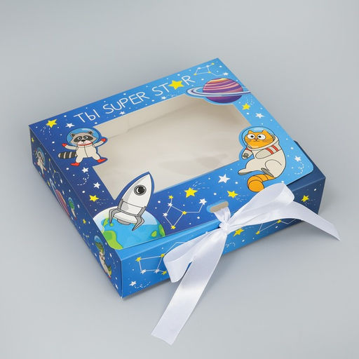 Цена за 5 шт. Коробка подарочная складная с пластиковым окном, упаковка, «Космос», 20×18×5 см
