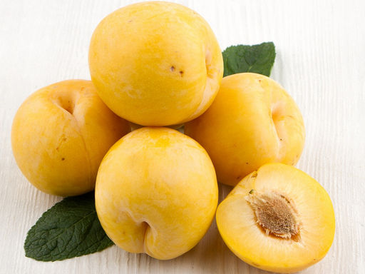 Уже, исходя из названия, не сложно догадаться, почему она так названа. Слива Белая медовая обладает ярким медовым ароматом и превосходнейшим вкусом, без излишней приторности. Дегустационная оценка 4,5 балла. Плоды округлые ярко-жёлтые, порой с оранжевым отливом, внутри круглая косточка. Снаружи наблюдается редкий восковой налёт. Масса одного плода в средне от 40 до 50 г. Созревание наступает уже к концу июля, это один из самых раннеспелых сортов.