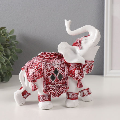 • Сувенир полистоун "Белый слон. Бордовая попона с цветком и стразой" 17,5х9х17 см