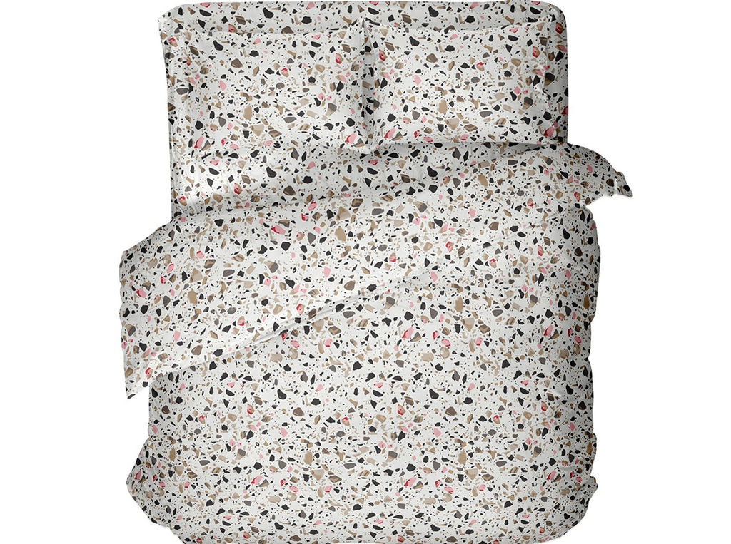 Размер общий: Евро Артикул: 41262-БЧ Тип ткани: Бязь Состав: 100% Хлопок Вид оформления: Набивная (С рисунком) Пододеяльник, см: 225*215 Простыня, см: 240*220 Рисунок: 6076-02 Terrazo Применение: Спальня Производитель: Беларусь Характер рисунка: Абстракция Оттенок цвета: Белый , Оттенки кремового, бежевого , Оттенки розового , Оттенки серого Упаковка: пакет пвх Тип простыни: без резинки Комплектация: Наволочки 2шт, Пододеяльник 1шт, Простыня 1шт Тип изделия: Комплект постельного белья Наволочка, см: 50*70 - 2 шт Плотность, г/м?: 125