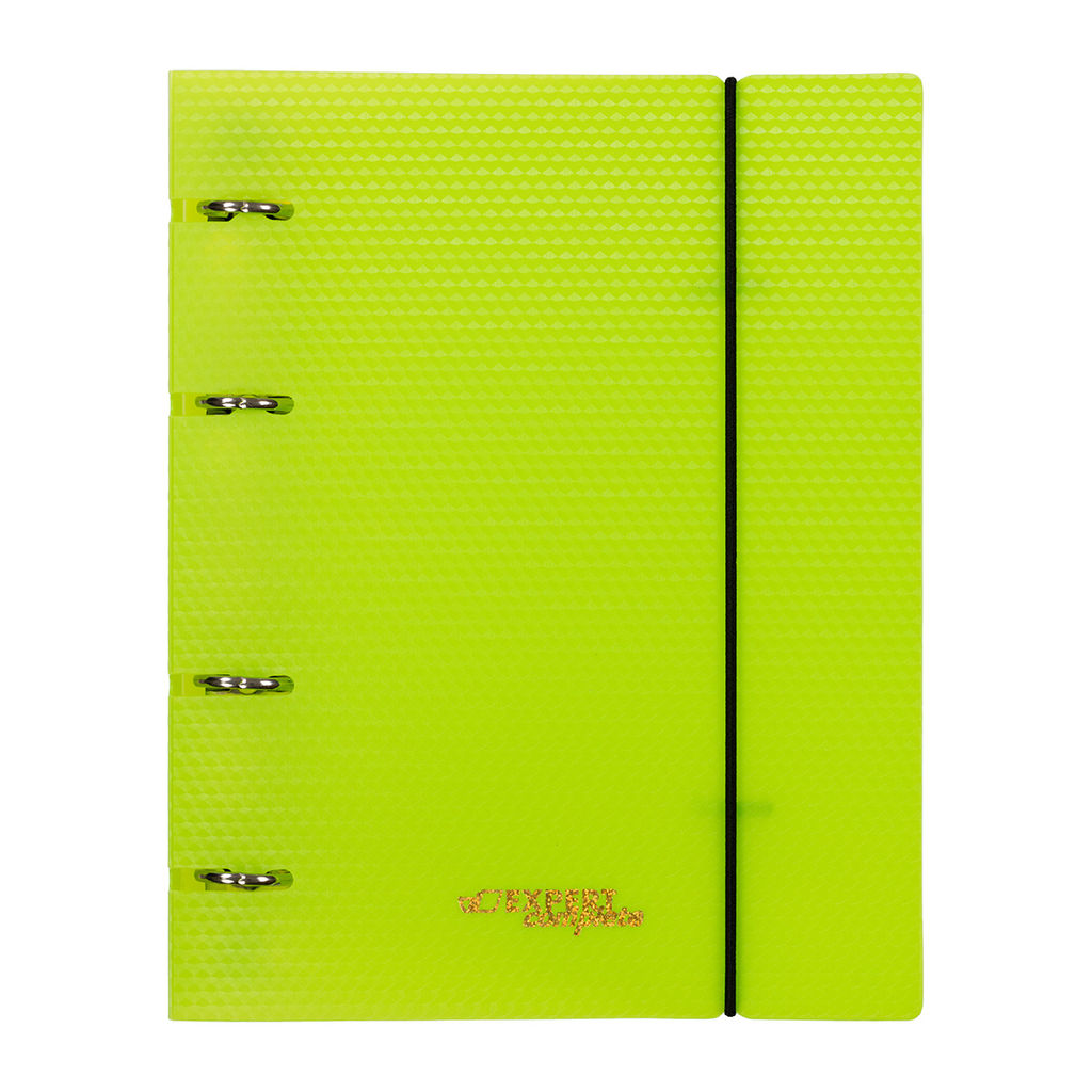 • Expert Complete PRISMA NEON Папка-обложка для сменного тетрадного блока на 4 кольцах A5+ 700 мкм 20 мм эффект 3D 1 шт. d - 20 мм лайм EC21140021