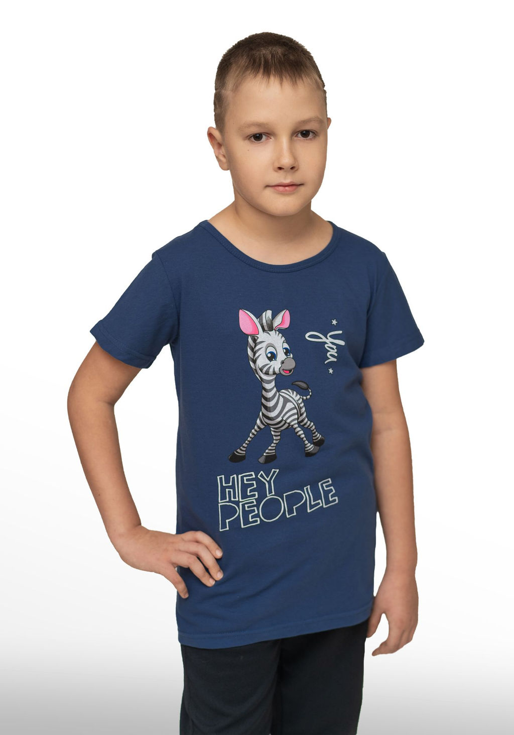 Артикул: Футболка детская, модель 314, трикотаж (Зебра, индиго)