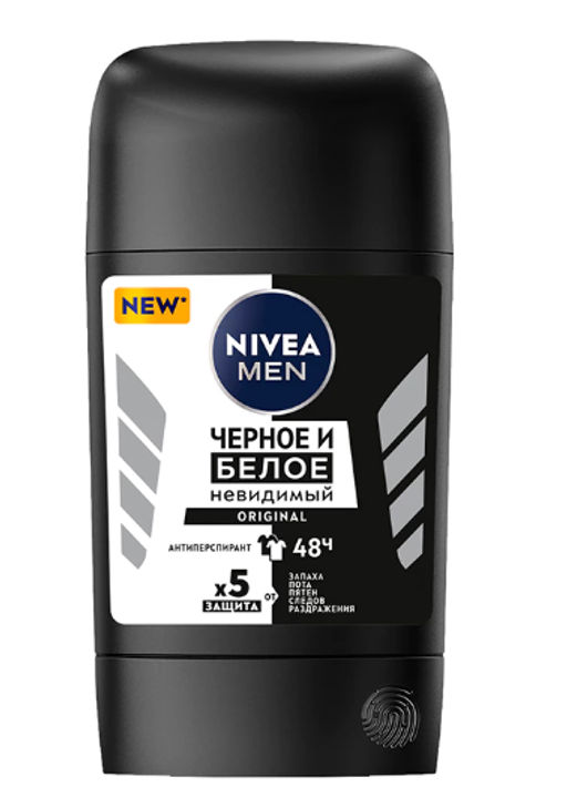 Описание товара Мужской дезодорант-стик невидимый Черное и белое 48ч Men Original немецкого бренда Nivea входит в состав мужской серии средств по уходу за кожей. Он выпущен в компактном формате твёрдого антиперспиранта, который легко и бережно наносится, не травмирует кожу, экономно расходуется, полностью впитывается, не оставляет пятен и разводов на коже и одежде, обеспечивает защиту от пота и неприятного запаха в течение 48 часов.