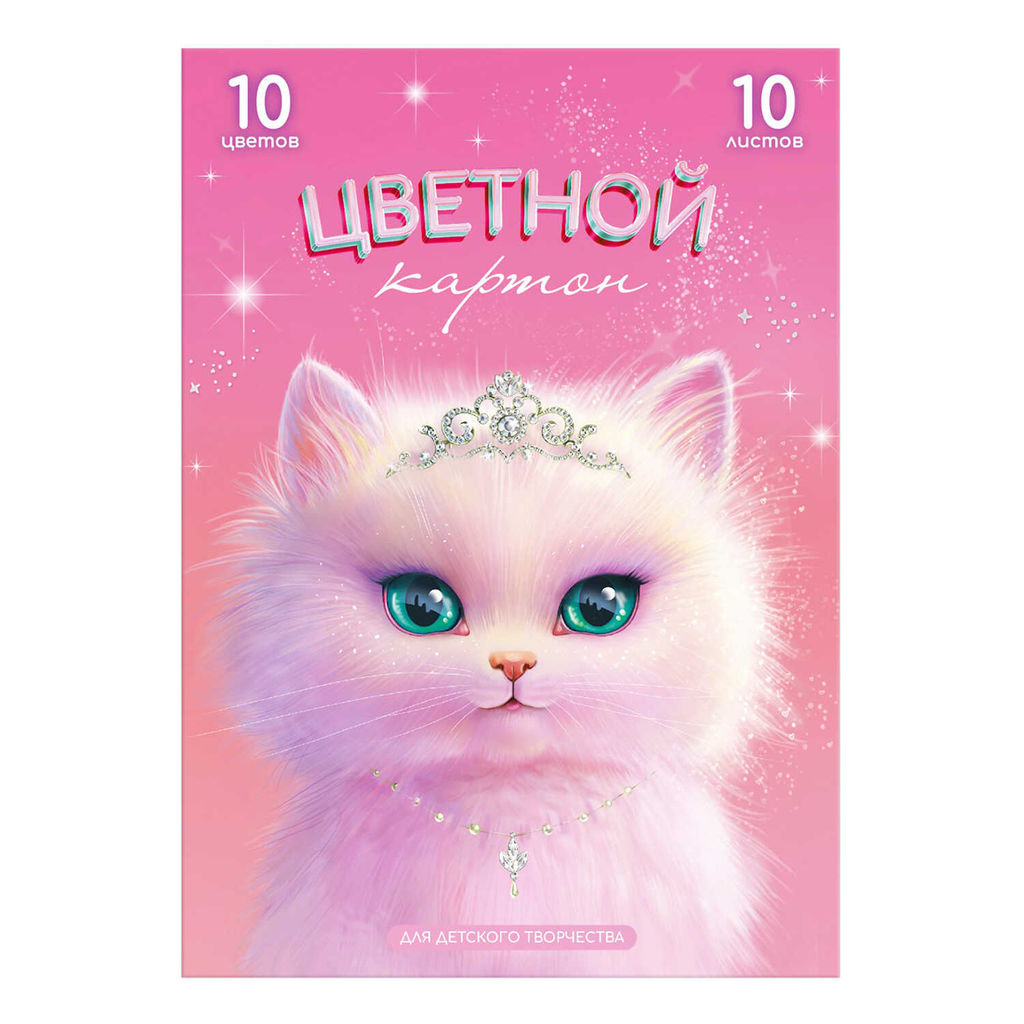 Цветной картон арт. 69972 ПРИНЦЕССА АВРОРА /А4, клеевое скрепление, 10 л, (8 цветов+золото+серебро), обложка - полноцветная печать, мелованный картон с серым оборотом 230 г/м?, блок - мелованный картон с белым оборотом, 200 г/м?, 10 цветов, односторонняя печать /