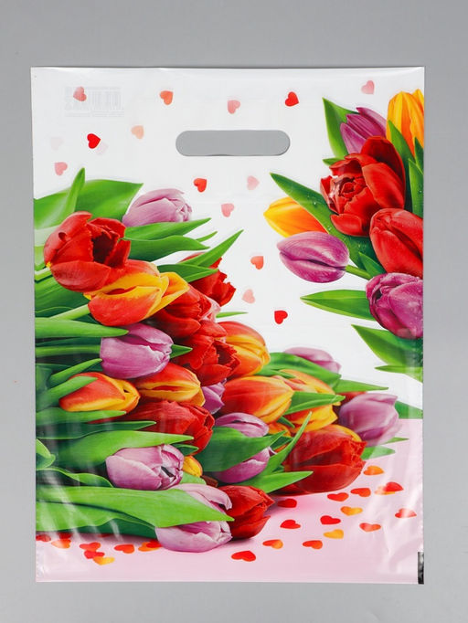 Цена за 50 шт. Пакет подарочный «Март», полиэтиленовый с вырубной ручкой, 31×40 см, 60 мкм