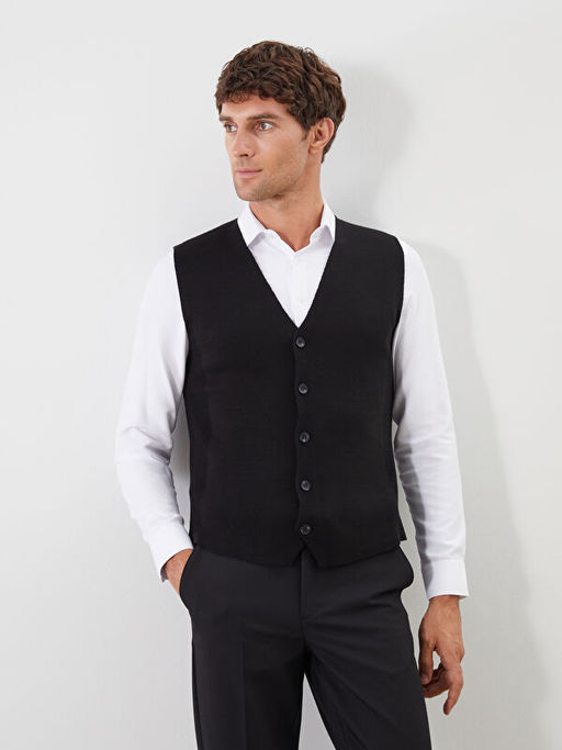 Standart Kal?p V Yaka Erkek Triko Yelek