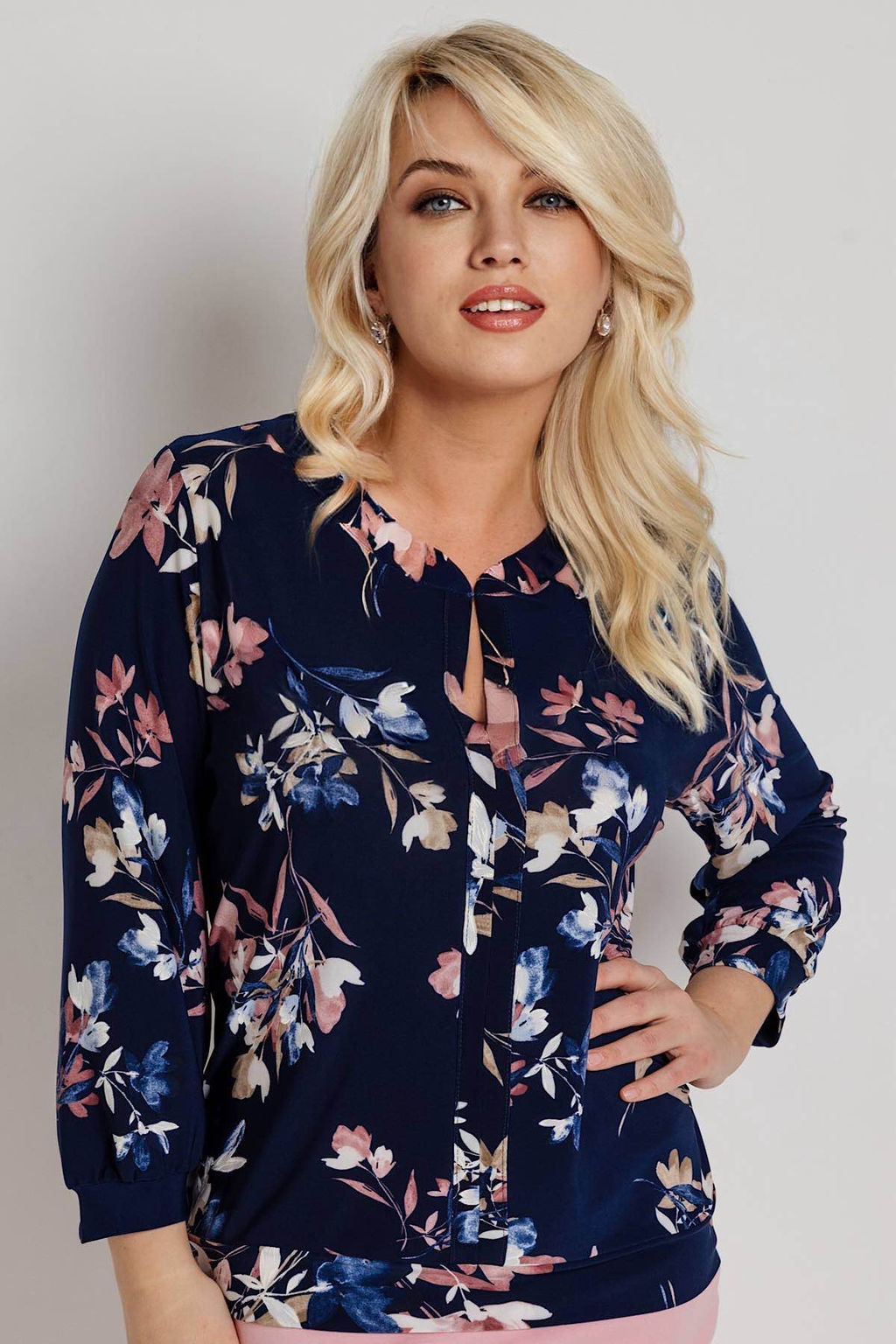 Блузка выполнена из трикотажного полотна, рукав 3/4. Элегантно смотрится, легко стирается, не теряет и не меняет цвет. Так как в ткани используется большое количество вискозы, ткань дышащая и легко пропускает воздух, сохраняет форму и посадку даже после многочисленных стирок. Модель свободного силуэта имеет эластичный пояс по низу изделия с напуском. Блуза представлена в ярких, современных и модных расцветках. Блузка станет неотъемлемой частью Вашего образа.  Блуза прекрасно подходит для торжеств и повседневных мероприятий. Сочетайте блузу с брюками, юбками, и с любым типом обуви. Блузка бренда RISE - это стиль, качество и комфорт!