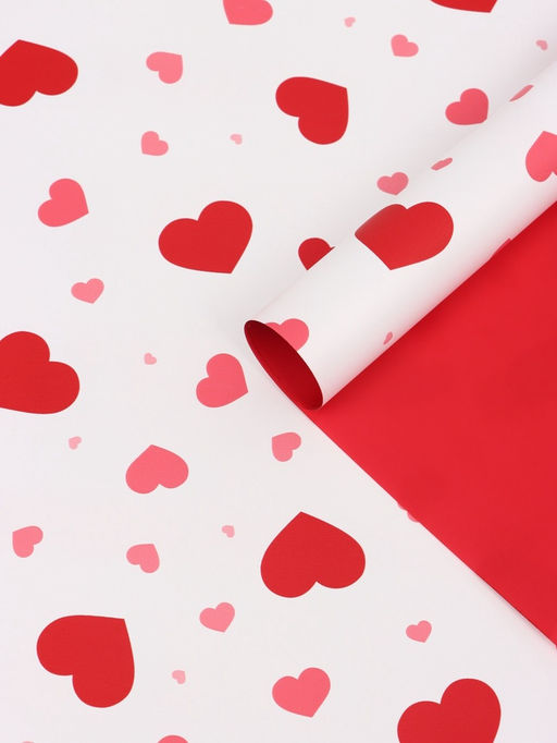 • Цена за 20 шт. Пленка для цветов, «Сердца на белом», красная, 57×57 см