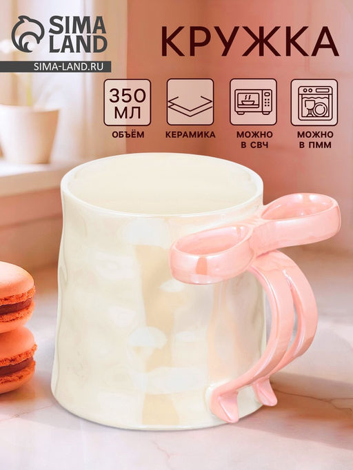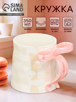 Кружка «Бантик», керамика, 350 мл, 8.5×9 см, белая, розовый бант