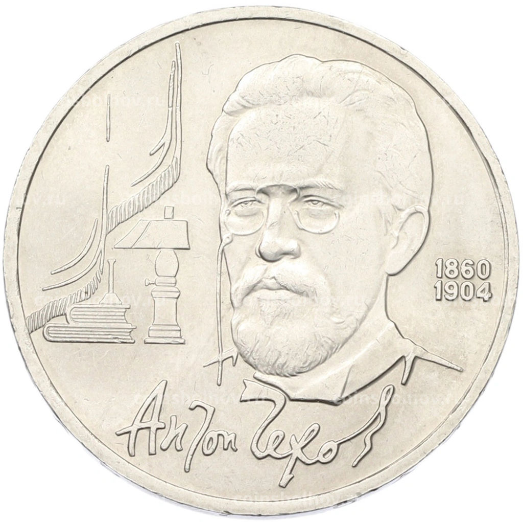 • Монета 1 рубль 1990 года Антон Павлович Чехов
