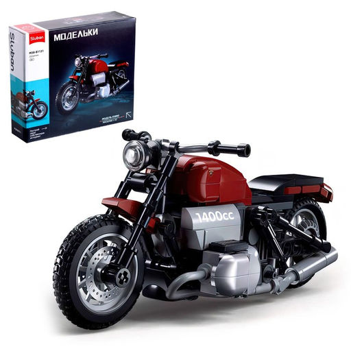 Из конструктора «Sluban. Модельки» ребёнок соберёт стильный и мощный мотоцикл! Готовой моделью можно украсить полку с коллекционными фигурками. ХарактеристикиВ наборе 222 детали.Конструктор сделан из качественного и нетоксичного пластика, безопасного для здоровья детей.Длина готового мотоцикла: 17 см.Среднее время сборки: около 110 минут.Набор подойдёт в качестве подарка на день рождения, Новый год, 23 Февраля как ребёнку, так и коллекционеру.Конструктор рекомендован для детей старше 6 лет.Развиваемся, играяИгрушки радуют детей и делают их досуг весёлым и увлекательным. А ещё они развивают важные навыки. Например сборка конструктора развивает мелкую моторику, логику, аккуратность, усидчивость и память. Вид транспорта: Мотоцикл. Возраст: От 6 лет. Среднее время сборки, мин: 110. Количество элементов: 222. Тематика конструктора: Транспорт. Тип механизма: Без механизма. Уровень сложности: Средний. Бесплатная доставка: Да.