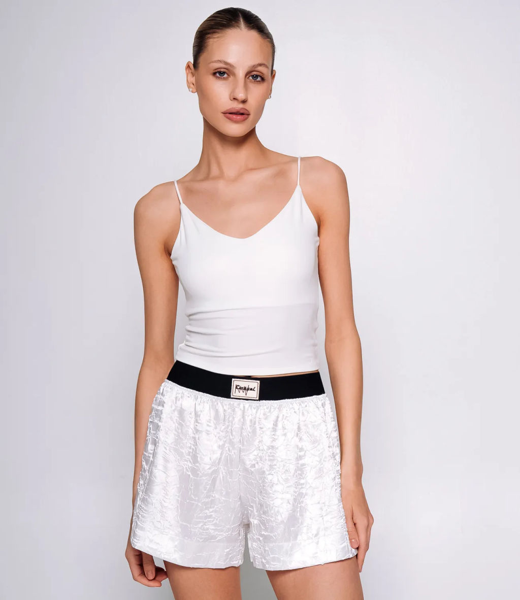 Эти женские шорты выполнены с высокой талией, что подчеркивает фигуру и добавляет элегантности. Они имеют металлический принт, который придает им стильный и современный вид. Материал шорт 100% полиэстер, что делает их легкими, прочными и устойчивыми к износу. Полиэстер также обеспечивает хорошую воздухопроницаемость и легкость в уходе, так как ткань быстро сохнет и легко стирается. Шорты идеально подходят для повседневного ношения или активного отдыха, сочетая комфорт и модный дизайн. Вы обязательно будете носить с большим удовольствием. Чтобы вы были уверены в размере, мы представили на странице таблицу. Воспользовавшись ею, вы сможете сами сделать мерки и удостовериться. Предложенная нами цена является приемлемой. Не откажите себе в удовольствии быть элегантной!­