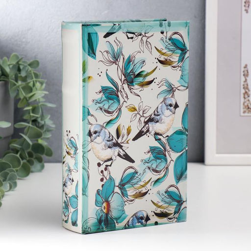 • Шкатулка книга - сейф Голубые птички и зелёные цветы, дерево, искусственная кожа, 21?13?5 см