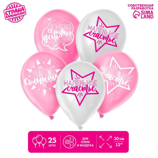 Воздушные шары латексные 12" «День рождения девочки», 25 шт.