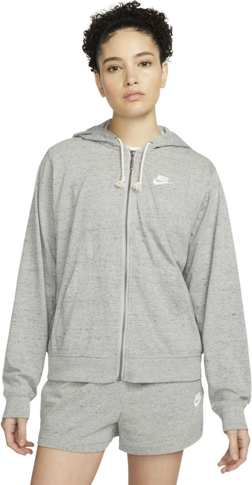 ЛЕГКАЯ МОДЕЛЬ ДЛЯ ОТДЫХА В ТЕПЛУЮ ПОГОДУ Худи с молнией во всю длину Nike Sportswear Gym Vintage — новая версия базовой модели из меланжевой хлопковой ткани джерси, которая представлена в силуэте удобной флисовой футболки. Гладкая и мягкая трикотажная ткань содержит черные или белые вкрапления (в зависимости от расцветки), которые создают плавные переходы для особого винтажного эффекта.Конструкция оверсайз из ткани джерси дополнена свободными рукавами со слегка спущенной линией плеча. Свободный силуэт обеспечивает комфорт и позволяет легко сочетать модель с другой одеждой. Гладкая трикотажная ткань дополнена акцентами из непса, создающими особый винтажный эффект. Эта более легкая, чем флис, хлопковая ткань джерси дает оптимальное тепло для отдыха и прекрасно сочетается с другой одеждой. Манжеты и нижняя кромка из рубчатой ткани обеспечивают удобную посадку и позволяют легко комбинировать худи с другой одеждой. Боковые карманы для самого необходимого. Утягивающий шнурок капюшона с необработанными концами и узелками обеспечивает индивидуальную посадку. Дополняет образ принт с логотипом Futura.