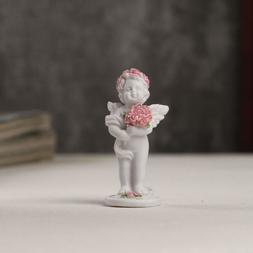 • Цена за 2 шт. Сувенир полистоун "Белоснежный ангел в розовом веночке с букетом роз" 5,3х2,3х2,3 см