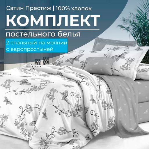 2 спальное постельное белье из сатина "Престиж" плотностью ткани 115 г/м2, несомненно станет достойным дополнением в вашей комнате так как имеет много достоинств: элегантный и благородный дизайн, высокое качество абсолютно натуральной ткани из 100% хлопка, отличное качество пошива, оно плотное, износостойкое, гипоаллергенное, очень приятное по тактильным ощущениям. В комплекте: пододеяльник 180*215 см, оснащенный удобной потайной застежкой на молнии, простыня 240*220 см, две наволочки 70*70 см на молнии. Комплекты постельного белья из сатина «Престиж» - это выбор людей, которые ценят комфорт и выбирают качество. -- Характеристики -- Вес: 2000 кг Размерность комплекта: 2-х спальный Комплектность: 1 пододеяльник, 1 простыня, 2 наволочки Количество предметов в комплекте: 4 Размерность пододеяльника: 2-х спальный Размер пододеяльника: 180x215 Кол-во пододеяльников в комплекте: 1 Замок пододеяльника: На молнии Размерность простыни: Евро Размер простыни: 240x220 Размер наволочки: 70x70 Замок наволочки: На молнии Кол-во наволочек в комплекте: 2 Ткань: Сатин "Престиж" Состав: 100 % хлопок Плотность: 115 г/м2 Плотность плетения: Высокая Режим стирки: При 40 градусах Цвет: Белый Расцветка: Антонэлла Вид принта: Бабочки Целевая аудитория: Взрослая